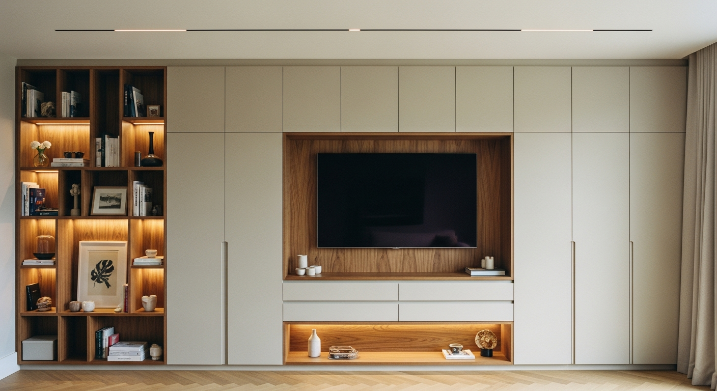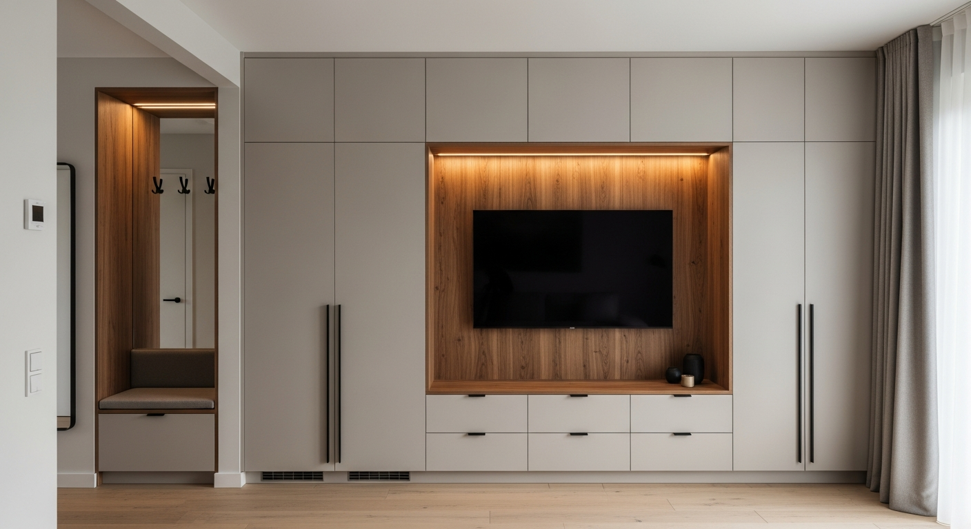 Подбираем материалы, ручки, фрезеровку и световые решения так, чтобы шкаф стал частью интерьера, а не отдельным элементом. Вы получаете продуманный вид, который полностью отражает ваш стиль и поддерживает