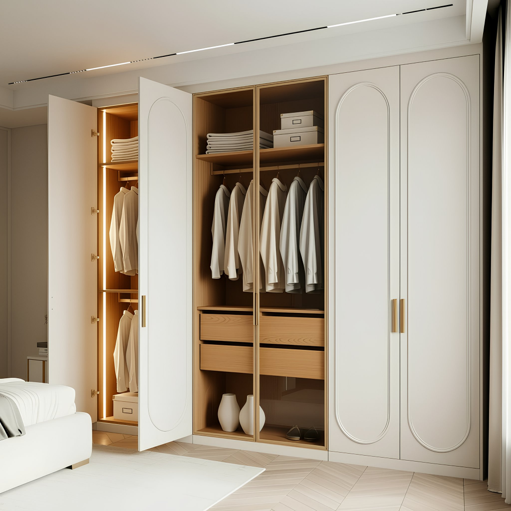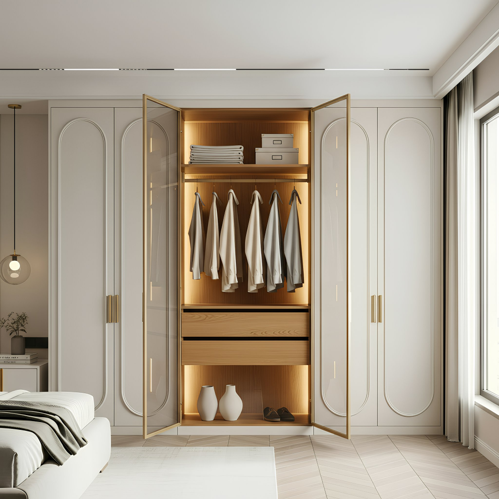 Подбираем материалы, ручки, фрезеровку и световые решения так, чтобы шкаф стал частью интерьера, а не отдельным элементом. Вы получаете продуманный вид, который полностью отражает ваш стиль и поддерживает