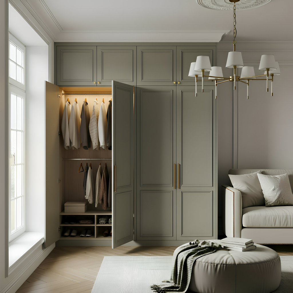 Подбираем материалы, ручки, фрезеровку и световые решения так, чтобы шкаф стал частью интерьера, а не отдельным элементом. Вы получаете продуманный вид, который полностью отражает ваш стиль и поддерживает